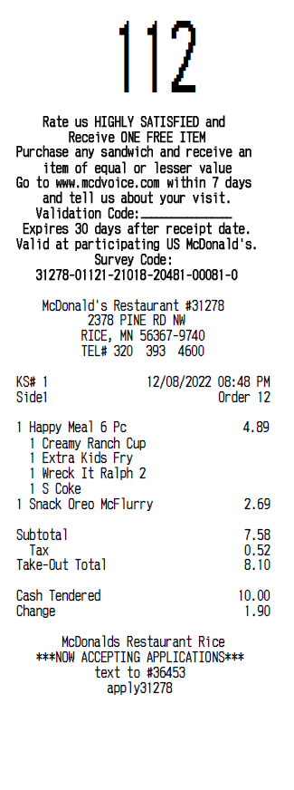 > McDonalds Restaurant Rice> ***NOW ACCEPTING APPLICATIONS***> text to #36453> apply31278Parse Receipt With Instructions
